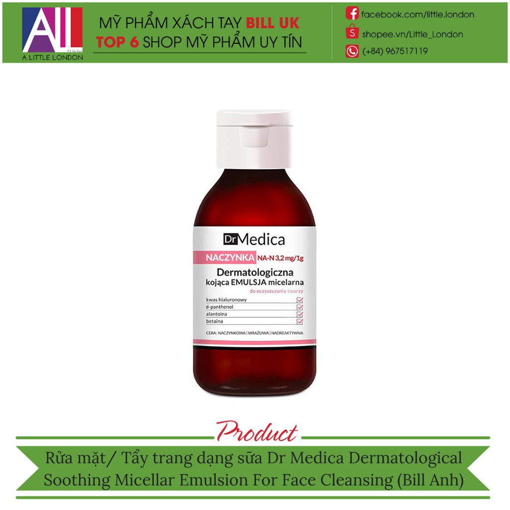 [TOP 1 SHOPEE] Rửa mặt/ Tẩy trang sữa Dr Medica Dermatological Soothing Micellar Emulsion For Face Cleansing (Bill Anh)