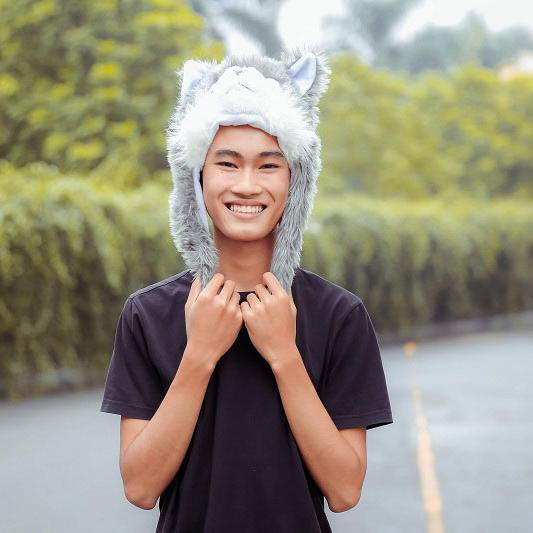 Mũ,Nón Tai Giật Cậu Vàng Cao Cấp LV1977 hình Chó Sói Dễ Thương , Màu Xám, Chất Liệu Bông